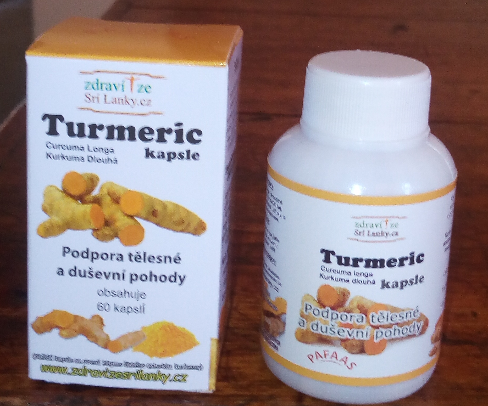TURMERIC – Curcuma longa bylina známá pod názvem kurkuma, je považována za královnu ayurvédských bylin. Pochází z tropických oblastí jižní Asie, kde se využívá již po tisíciletí. Nejčastěji se s ní můžeme setkat jako s oblíbenou přísadou pokrmů asijské kuchyně Povolená tvrzení EU ke konkrétním bylinám: Curcuma longa (Turmeric), Český název: Kurkuma dlouhá Normální činnost jater ,Normální činnost kardiovaskulárního systému - krevní oběh, Imunitní systém – antioxidant, Normální stav kloubů a kostí, Normální činnost jater, Normální činnost nervové soustavy, Normální funkce dýchacího systému, Normální stav pokožky Obsah: 60 kapslí Doporučené dávkování: 2 kapsle denně – nejlépe večer po jídle. Zapít nejlépe sklenicí vlažné vody. Země původu: Srí Lanka Vyrobeno a baleno na Srí Lance. Více informací o této bylině naleznete např. v některé z internetových encyklopedií. Dle současné legislativy EU u bylinek a bylinných produktů nesmíme uvádět podrobnější informace, které by v nás mohly vzbudit dojem zdravotního nebo léčebného účinku bylin - byť se ony bylinky používají stovky let a pomohly miliónům lidí. Informace dle nařízení Evropského parlamentu a Rady (EU): Doplněk stravy - Upozornění: Není určeno pro děti, těhotné a kojící ženy. Uchovávejte mimo dosah dětí! Nepřekračujte doporučené dávkování. Není určeno jako náhrada pestré stravy. Uchovávejte na suchém a temném místě při pokojové teplotě. Dovoze: František Pavlišta/Pafaas, Hlavice 3, 46348, Všelibice, IČO: 41349652