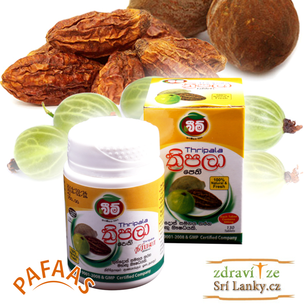 Thripala balení 130 detoxikačních tabletek Složení: Aralu (Terminalia chebula), Bulu (Terminalia bellirica), Indický angrešt / Nelli (Phyllanthus emblica) Amalaki (Emblica officinalis), neboli emblika lékařská, zvaná také indický angrešt je ovoce, které obsahuje nejvíce přírodního vitaminu C. Tento vitamin přispívá k normální tvorbě kolagenu, čímž pozitivně působí na kůži, kosti, chrupavky a na normální funkci krevních cév. Napomáhá k ochraně buněk před oxidativním stresem, což vede k normální funkci imunitního systému. Je vhodný pro sportovce, protože přispívá k udržení normální funkce imunitního systému během intenzivního fyzického výkonu i po něm. Vibhitaki (Terminalia belerica) neboli vrcholák myrobalánový je listnatý strom, který se vyskytuje ve vlhkých lesnatých oblastech Indie a Filipín. Pro medicínu jsou důležité zejména jeho plody (haritaki) a dužnaté oplodí, které je přírodním antioxidantem. Účinné látky obsažené ve vibhitaki pomáhají udržovat normální hladinu cholesterolu a glukózy v krvi. Haritaki (Terminalia chebula) neboli vrcholák tříslovitý je strom rostoucí v podhorských oblastech Himalájí. Dosahuje výšky až 1500 m. K léčebným účelům se používají především plody této rostliny. Překlad sanskrtského názvu Haritaki znamená „odnáší, odplavuje" nebo také „zbavuje všech nemocí". Účinné látky obsažené v plodech Terminalia chebula napomáhají optimální funkci střev. Spojení amalaki, vibhitaki a haritaki pak působí pozitivně na normální trávení a přispívají k normálnímu energetickému metabolismu, což vede k optimálnímu střevnímu pohybu a vylučování. TRIPHALA je také vhodná pro osoby ve stresu. Spojení tří ájurvédských bylinek totiž podporuje normální činnost nervové soustavy a psychické činnosti. Důsledkem je pak snížení míry únavy a vyčerpání a celkové zlepšení nervovéhosystému. Dávkování • Pro omlazení a udržování dobrého zdraví: jedna až dvě tablety, dvakrát denně jako vhodná prevence. • Pro překyselení a žaludeční podráždění, trávení, nadýmání, stresu a související poruchy.: 2 tablety dvakrát denně, podle potřeby. • Při zácpě a střevních nesrovnalostech. Dvě až čtyři tablety, po večeři, podle potřeby. (Ze začátku dvě tablety na noc a postupně zvýšit dávku na tři a čtyři, v případě potřeby.) Velikosti balení: 200 tab. Každá tableta obsahuje 550 mg (což odpovídá 1 g Thriphala) patentovanou směs Aralu, Bulu a Nelli. Dle současné legislativy EU u bylinek a bylinných produktů nesmíme uvádět podrobnější informace, které by v nás mohly vzbudit dojem zdravotního nebo léčebného účinku bylin - byť se ony bylinky používají stovky let a pomohly miliónům lidí. Informace dle nařízení Evropského parlamentu a Rady (EU): Doplněk stravy - Upozornění: Není určeno pro děti, těhotné a kojící ženy. Uchovávejte mimo dosah dětí! Nepřekračujte doporučené dávkování. Není určeno jako náhrada pestré stravy. Uchovávejte na suchém a temném místě při pokojové teplotě. Dovoze: František Pavlišta/Pafaas, Hlavice 3, 46348, Všelibice, IČO: 41349652
