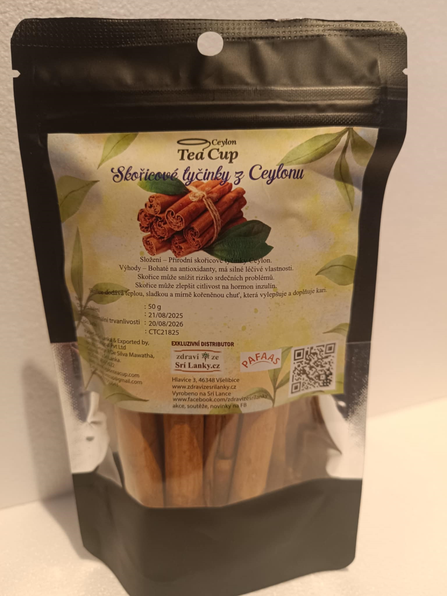 Cejlonská skořice pevná 50g Cinnamomum zeylanicum, Český název: Skořicovník ceylonský Normální hladina cukru v krvi, Osvěžení těla, Antioxidant, Normální činnost kardiovaskulárního systému - udržení normální hladiny cholesterolu v krvi, Normální trávení a funkce žaludku, Normální funkce reprodukční a močové soustavy, Normální stav pokožky a sliznic, Tělo, hlava, zuby, Normální funkce dýchacího systému, Normální činnost střev Dle současné legislativy EU u bylinek a bylinných produktů nesmíme uvádět podrobnější informace, které by v nás mohly vzbudit dojem zdravotního nebo léčebného účinku bylin - byť se ony bylinky používají stovky let a pomohly miliónům lidí. Informace dle nařízení Evropského parlamentu a Rady (EU): Doplněk stravy - Upozornění: Není určeno pro děti, těhotné a kojící ženy. Uchovávejte mimo dosah dětí! Nepřekračujte doporučené dávkování. Není určeno jako náhrada pestré stravy. Uchovávejte na suchém a temném místě při pokojové teplotě. Dovoze: František Pavlišta/Pafaas, Hlavice 3, 46348, Všelibice, IČO: 41349652
